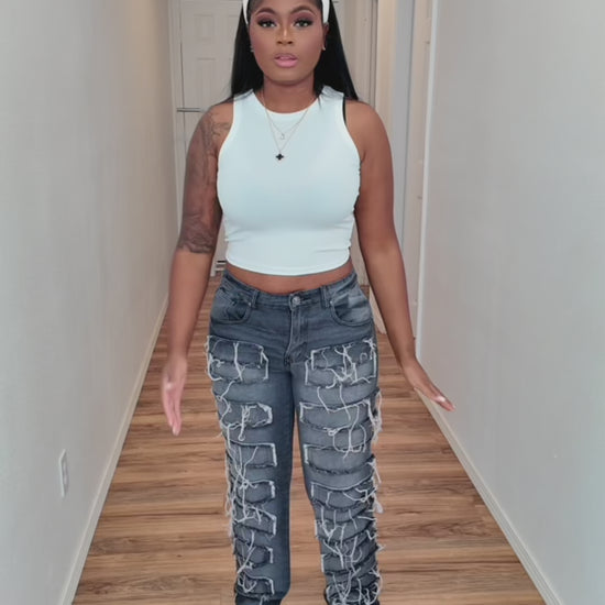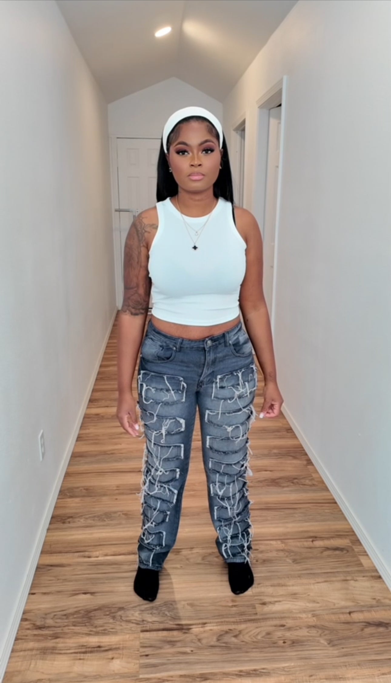 Women’s Dark Low Rise Fringe Distressed Jeans NO STRETCH SZ 30 | A Rare Find