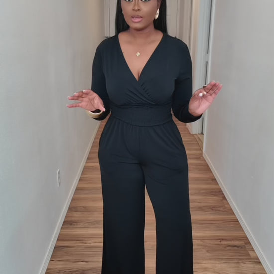 GROWN Woman Long Sleeve Black Flare Leg Jumpsuit SZ M
