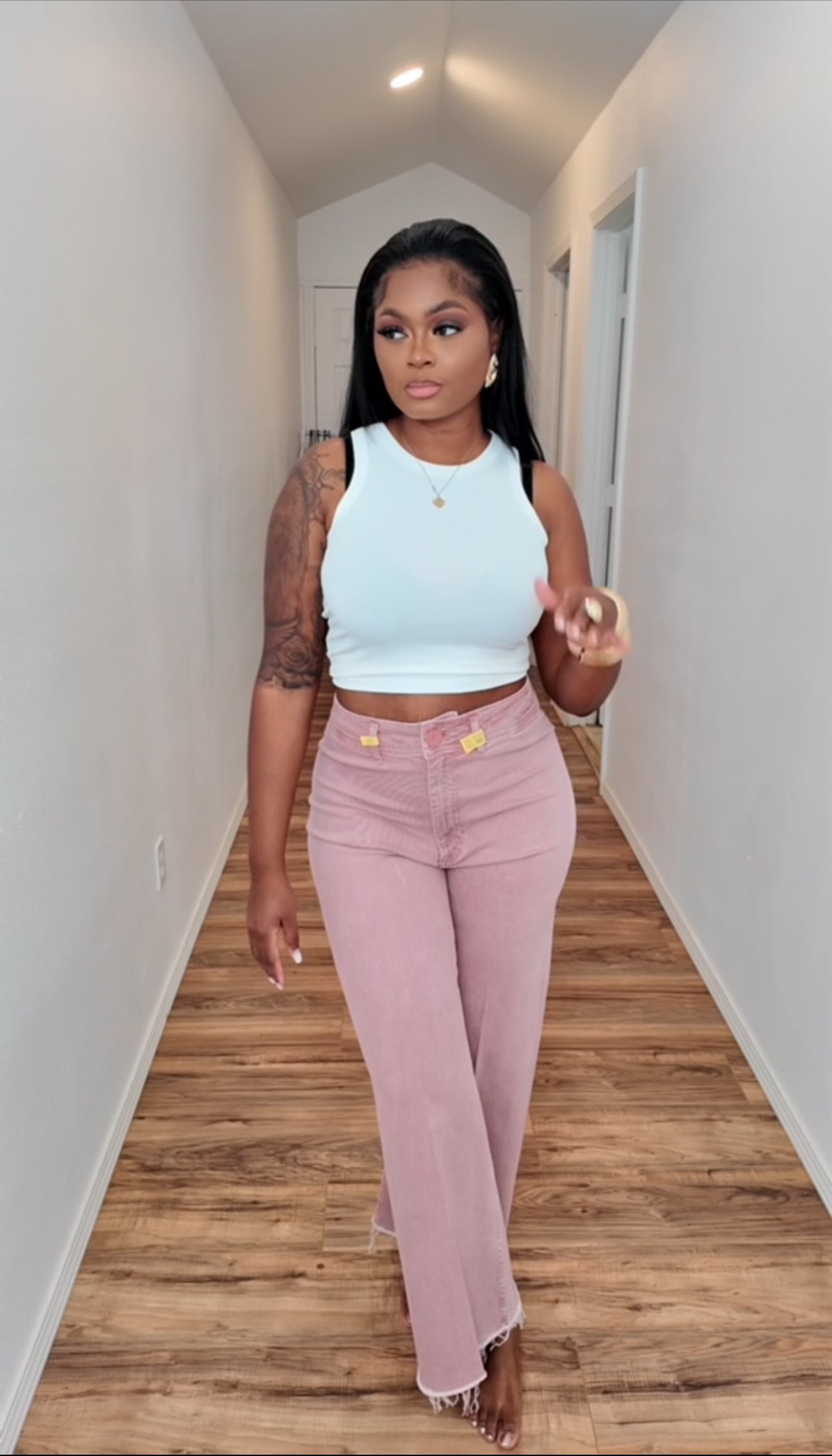 ZARA Women’s Light Pink Flare Denim Pants SZ 12